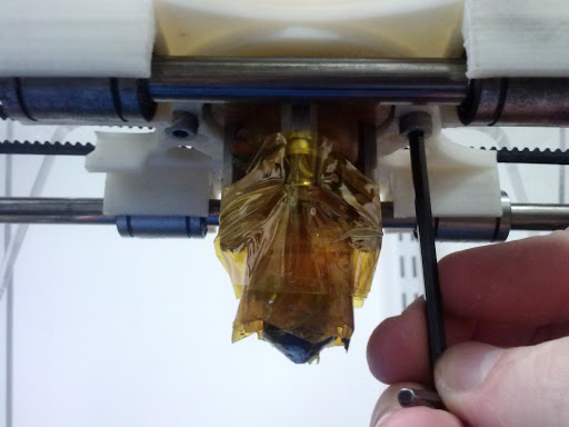 Photo #4: After heating up the extruder to ~230 degrees Celcius, find a tool like a hex wrench and gently push the jam through the extruder.