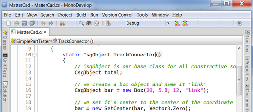 - Open 'MatterCad.cs' from within the MonoDevelop